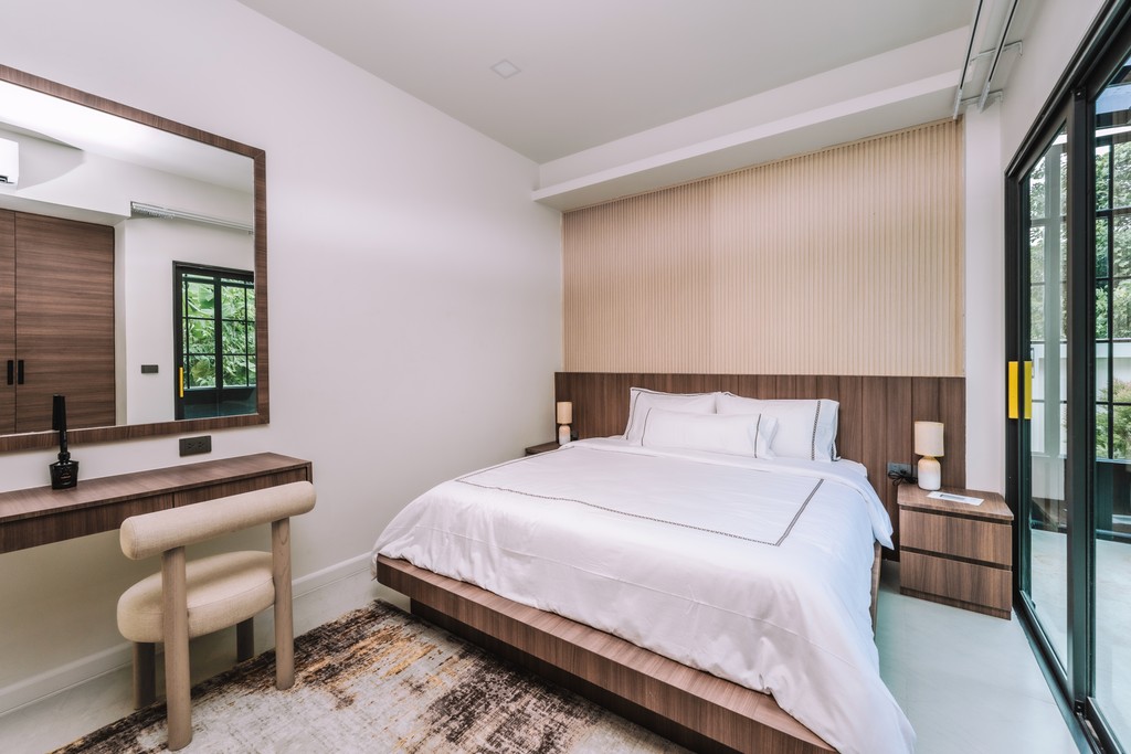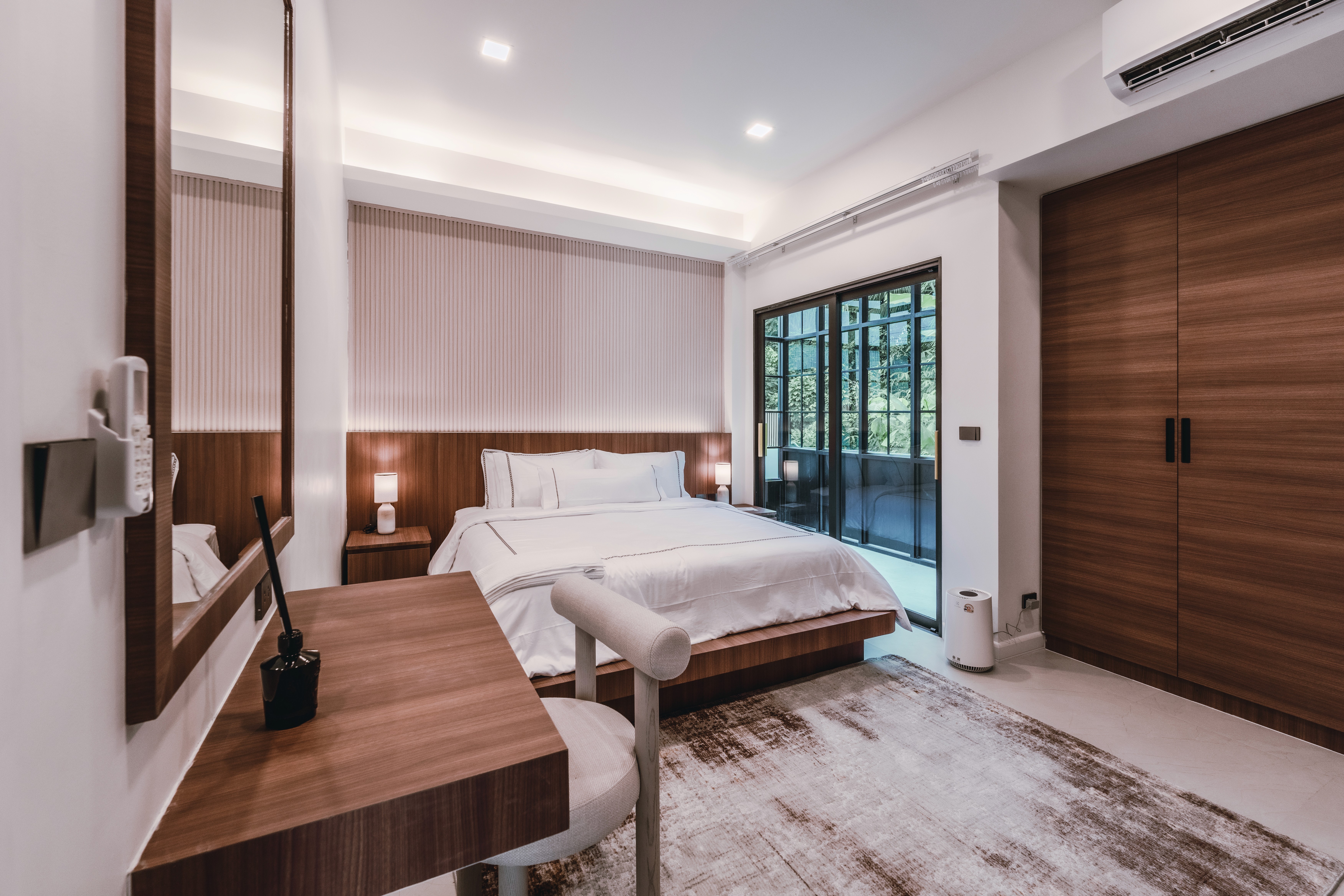Designed as more than just a bedroom, this space provides a personal retreat where indoor comfort meets the beauty of the outdoors, offering a closer connection to nature and a more refined living experience.
