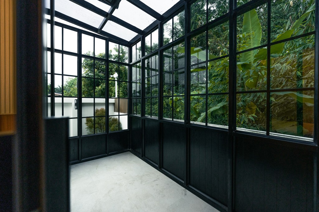 Bedroom 2 offers a unique sense of privacy through its beautifully designed glass house extension, creating an additional living space that feels open, light, and connected to nature. Inspired by modern Bali architecture, the space blends warm natural materials with expansive glass panels that invite natural light and greenery into the room.