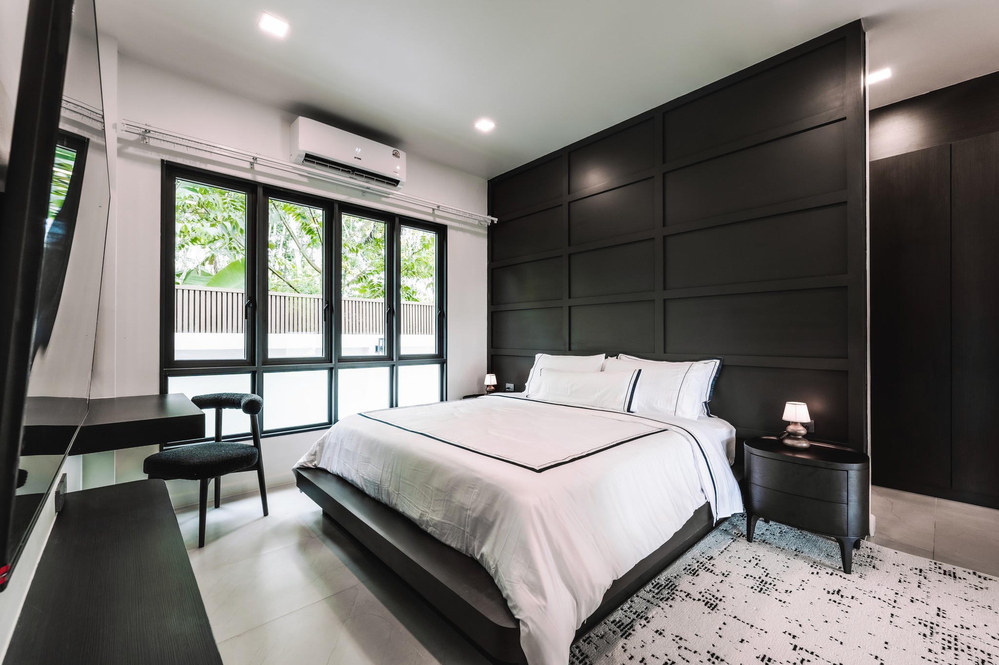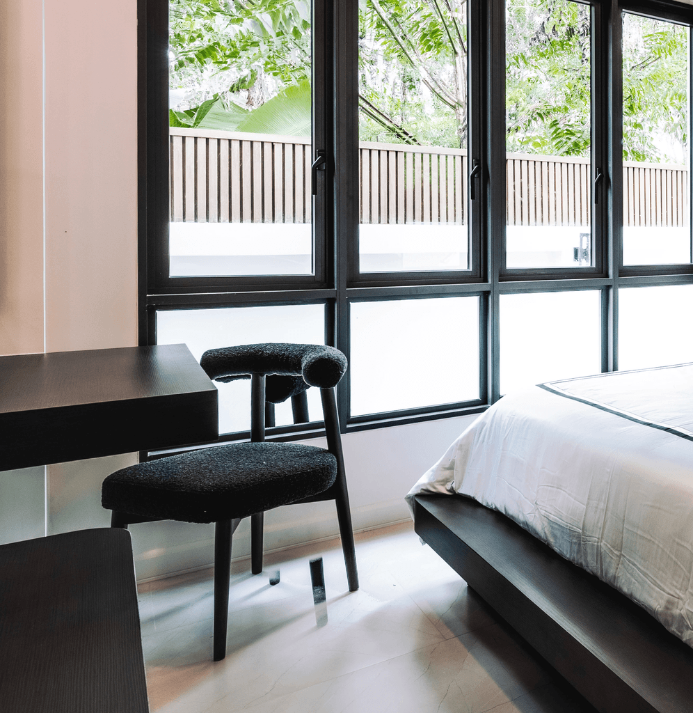 Large windows invite natural greenery into view, allowing gentle daylight to soften the interior and maintain a refreshing sense of openness.